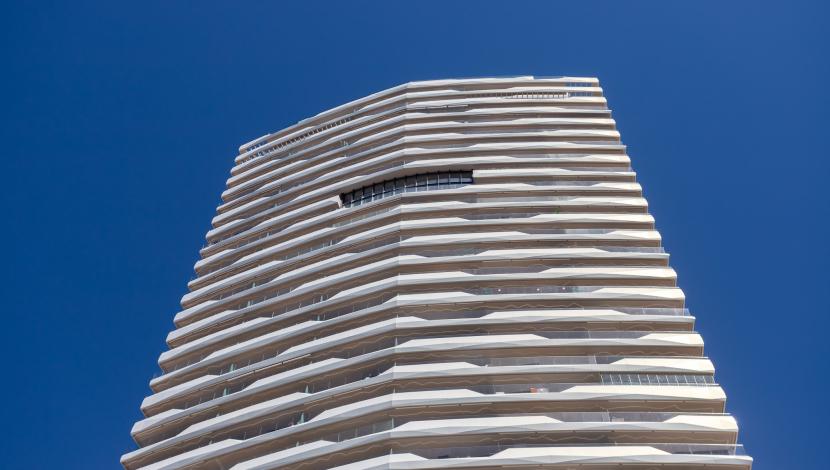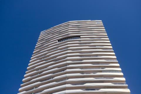 El residencial Benidorm Beach se eleva como un nuevo icono en la skyline de la ciudad, con una arquitectura ondulante que refleja el dinamismo del Mediterráneo. El edificio, compuesto por dos escaleras conectadas entre sí, ofrece viviendas con espectaculares vistas al mar y amplias zonas comunes diseñadas para disfrutar de la luz y la altura.
