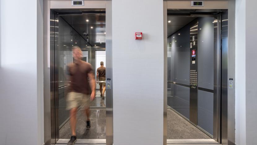 Para garantizar una movilidad fluida en sus más de 30 plantas, el complejo incorpora seis ascensores Orona, distribuidos en dos grupos de tres equipos. Esta configuración en dos tríplex permite optimizar los tiempos de espera y asegurar un desplazamiento cómodo y eficiente para todos los residentes, incluso en horas punta. Una solución de alta capacidad y fiabilidad para un edificio pensado para vivir en vertical.